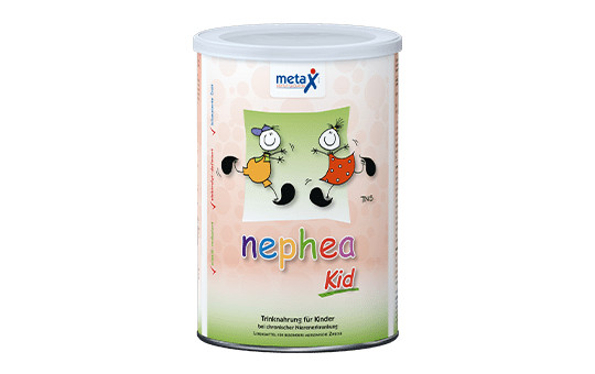 Nephea Kid je praškasta formula za peroralno in sončno hranjenje z zmanjšano vsebnostjo beljakovin, elektrolitsko uravnoteženo in energijsko bogato formulo za otroke od 1. leta starosti – obogatena z vitamini, minerali in elementi v sledovih.