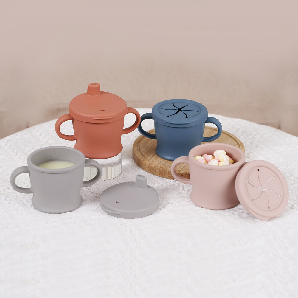 Poseben dizajn s silikonskimi pregradami na pokrovu za prigrizke omogoča malčku, da sam doseže hrano. Poslovite se od težkega odpiranja plastičnih posod! Lahko jo uporabljate doma ali pa jo vzamete s seboj na izlete, kampiranje ali kamorkoli greste, prigrizki vašega malčka pa bodo ostali varno znotraj skodelice!